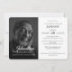 Esta bela carta de convite memorial serve como uma homenagem sincera a um ente querido. A frente da placa apresenta um elegante layout preto e branco com uma foto do seu ente querido, combinando uma estética de eterno com um senso de calor e memória. A tipografia é uma mistura de escrituras sofisticadas e fontes serif modernas, criando um toque refinado, mas pessoal. O convite inclui detalhes essenciais sobre o serviço memorial, garantindo um evento respeitoso e organizado. A parte de trás do cartão continua o design ponderado com uma foto desbotada e um pedido para que os convidados compartilhem histórias e memórias queridas. Este cartão memorial é uma forma significativa de honrar e celebrar a vida de um ente querido enquanto convida amigos e familiares a juntarem-se à memória. Disponível como placas impressas ou um download digital instantâneo.