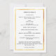 Um fundo branco, uma falsa estrutura dourada. Personalize e adicione uma foto, nome, datas e texto. Texto preto.