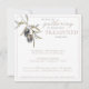 Galhos de oliveiras pintados à mão enfeitam esta delicada e amorosa celebração do convite à vida em tons suaves neutros