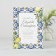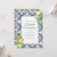 Composto por uma escrita cursiva e tipografia serifônica em botânicos folínicos verdes com folha verde-clara; tudo contra um pano de fundo de azulejos espanhóis brancos, amarelos e azuis mediterrânicos com limões amarelo-aquarela. Esta é uma comemoração antiga da vida, funeral ou convite memorial. Este é projetado pela White Oak Memorials, exclusivo para Zazzle. Disponível aqui: http://www.zazzle.com/store/whiteoakmemorials