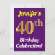 Convite Celebração Dourada de aniversário de 40 anos roxa,