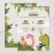Prepare-se para rugir de emoção com o nosso adorável convite de aniversário duplo para crianças com dinossauros fofos! Perfeito para dois pequenos exploradores que estão celebrando seus aniversários juntos, este convite transportará seus convidados para uma festa pré-histórica cheia de diversão e aventura.