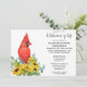 Funeral Memorial Do Cardeal E Girassóis / Celebração Do Convite À Vida. Estes convites de compaixão por funeral apresentam um pássaro cardeal vermelho em um buquê de flores solares florais. Personalize esta celebração do convite ao funeral de vida com o seu nome e datas, detalhes do evento. COPYRIGHT © 2021 Judy Burrows, Black Dog Art - Todos Os Direitos Reservados. Cardeal Memorial Floral Celebração Do Convite À Vida
