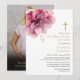 Este convite elegante para celebração cristã de vida e lembrança com flores cor-de-rosa em aquarela pode ser personalizado com suas informações em tipografia moderna e foto no verso. Criado por Thisisnotme©