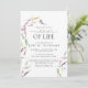 Uma bela e elegante flor silvestre de aquarela floral e caligrafia com letra de mão Celebração do convite para o serviço memorial Life. O texto é facilmente personalizado. Copyright Anastasia Surridge for Elegant Invites, todos os direitos reservados.