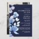 Esta elegante celebração floral azul marinho da vida e do convite à lembrança pode ser personalizada com a sua informação na tipografia clássica e uma fotografia do seu amado no verso. Projetado por Thisnotme©