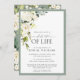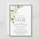 Um belo, elegante branco e sábio verde-aquarela floral e caligrafia com letra de mão Celebração do convite para o serviço de memorial Life. O texto é facilmente personalizado. Copyright Anastasia Surridge for Elegant Invites, todos os direitos reservados.