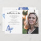 Celebração do anúncio da Vida com uma bela borboleta e espaço para uma fotografia favorita. Todos os detalhes podem ser personalizados.