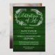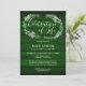 Uma elegante celebração rústica de um convite à lembrança da vida, com uma folhagem desenhada à mão sobre um fundo de madeira verde com uma fotografia especial no verso. Projetado por Thisnotme©