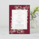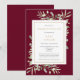 Elegante convite de celebração de vida personalizado com folhagem botânica em aquarela em um fundo burgundy. Criado por Thisisnotme©