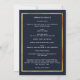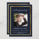 Um fundo azul escuro, uma falsa estrutura dourada. Personalize e adicione uma foto, nome, datas e texto. Texto branco.