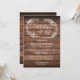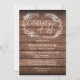 Um convite de celebração da vida elegante e rústico com uma guirlanda de folhagem desenhada à mão sobre um fundo de painéis de madeira. Concebido por Thisisnotme