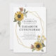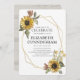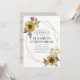 Composto por uma escrita cursiva e pela tipografia serifônica, tudo contra um pano de fundo de madeira na parte de trás do cartão e flores girassol felizes. Disponível aqui: http://www.zazzle.com/store/whiteoakmemorials