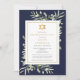 Um elegante convite de celebração judaica da vida funeral lembrança com folhagem botânica em aquarela sobre um fundo azul-marinho. Criado por Thisisnotme©