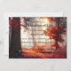 Um memorial mágico ou uma celebração de um convite para o serviço de vida que apresente uma ilustração da filtragem da luz solar através de uma colorida floresta de outono. No verso há espaço para uma foto personalizada.
