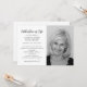 Uma celebração de um convite de vida mostra uma foto do seu amado, seu nome e detalhes na frente. No verso, há um lugar para uma oração, poema ou seu obituário - apagar nosso texto para deixar o vazio de trás. DICA: Foi aplicado um filtro preto e branco a esta fotografia. Há uma versão colorida deste convite em nossa loja. CORRESPONDENTE a itens na nossa coleção.