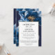 Este convite elegante de celebração da vida e do luto com flores azuis e douradas pode ser personalizado com suas informações em tipografia clássica. Criado por Thisisnotme©