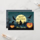 Celebração Noturna de Halloween, Carnaval, Cartão de Saudação Trendy, Cartão de Convite, Cartão Postal, Obrigado, Salve a Data - Cartão MAGIC Halloween Night Greeting, Cartão de Convite, Cartão postal, Cartão Postal, Salve a Data - Paisagem de Halloween, Lanterna de Halloween Pumpkin, Bat, Web Spider, Logotipo de Bruxa Magica de Halloween, Casa, Lua e Céu, Feiticeiro de Halloween, Inspiração, Feita à Mão. Símbolos da Noite Mágica do Halloween Ilustração com opção Personalizar Alteração de Texto