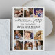 Este convite memorial permite que homenageamos nossos entes queridos de uma maneira única e memorável, celebrando suas vidas de uma forma que é moderna e respeitosa. Não só fornecerá um encerramento e uma maneira de lembrar o falecido, mas também é uma forma de reconhecer o impacto que essa pessoa teve em nossas vidas. Com um fundo branco simples, 10 fotos de seu ente querido perdido e um modelo de celebração de vida.