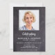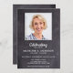 Funeral Rustic Chalkboard/Celebração Do Convite À Vida. Estes convites para festas de simpatia apresentam uma foto no quadro de chalkboard em uma cinza e design branca. Personalize esta celebração do convite para o funeral de vida com as fotos, nomes e datas de seus entes queridos, detalhes do evento. COPYRIGHT © 2021 Judy Burrows, Black Dog Art - Todos Os Direitos Reservados. Celebração Rústica Do Memorial Da Vida Foto Convite Funeral
