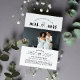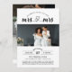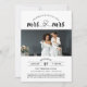 Gay sequel convite de casamento em branco com fontes pretas e sua foto de casamento. Numa arca acima de sra e sra. ligada a corações entrelaçados, comemore com o novo. Adicione seus detalhes de celebração de posto LGBT abaixo e outra foto de casamento do outro lado. Convite à recepção de casamento lésbica em branco e preto personalizado com suas fotos de casamento. O convite para comemoração da Sra. e Sra. posta personalizado com duas fotos.