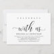Celebrar conosco, Feliz para sempre após a festa, cartão de convite para elopementos de casamento, em esquema preto e branco. Este livro temático de elopemento de casamento é perfeito para a festa de festa de casamento de posto de casamento. Adicione seus detalhes do convite para comemoração do elopemento de casamento. #TeeshaDerrick