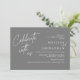 Anuncie, alegremente, seu estilo com nosso moderno tema da cinza das designs escuras (Celebrar conosco), o ensaio de casamento, na noite anterior ao nosso melhor convite para comemoração do dia. É ideal para casais que decidiram celebrar a noite antes do seu grande dia. Com seu design sofisticado, mas lúdico, este convite certamente define o tom de um evento inesquecível. A carta de convite apresenta o moderno design de roteiro romântico, adicionando um toque de elegância do eterno à sua celebração. Projetado por TeeshaDerrick