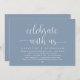 Script minimalista moderno, tema azul empoeirado, cartão de convite para elopemento de casamento (comemore conosco). É perfeito para sua recepção de elopemento de casamento/festa de celebração de posto. Adicione seus detalhes em caracteres pretos / letras correspondentes.