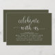 Announce and share your happily ever after in style with our modern olive green theme design "Celebrate with us" wedding elopement brunch, lunch, dinner, party and dancing celebration invitation card. It is ideal for couples who have decided to celebrate their best day. With its sophisticated yet playful design, this invitation is sure to set the tone for an unforgettable event. The invitation card features a modern and minimalist script design theme, adding a touch of timeless elegance to your celebration. Designed by TeeshaDerrick