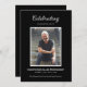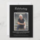 A celebration of life invitation features a photo of your loved one, their name, and details on the front on a black background and the invitation to your celebration on the back. Order PRINTED and or INSTANT DOWNLOAD to send digitally or print yourself. MATCHING items in our collection.