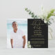 Elegant modern black and gold, garden greenery, funeral celebration of life remembrance photo invitation. Designed by Thisisnotme©