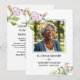 An elegant funeral memorial celebration of life Invitation with 1 special photo, flowers and hummingbirds.