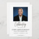 Share a meaningful tribute with this modern Celebration of Life photo memorial invitation. Featuring a clean, elegant layout with refined script typography, this customizable card offers a beautiful way to invite family and friends to a remembrance or celebration of life service. Personalize with your own photo and event details to create a timeless and heartfelt keepsake.