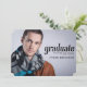 A nítida tipografia moderna aparece neste anúncio de graduação/convite que combina o estilo masculino com linhas limpas contemporâneas. O texto preto a negrito é colocado sobre o fundo da foto do retrato do mais velho do tamanho do cheio do seu filho. No verso, todo o texto pode ser personalizado. Use como convite para uma festa de formatura (conforme mostrado) ou altere facilmente o texto para apenas um anúncio. Perfeito para um retrato horizontal de mais velho deslocado onde o assunto está à esquerda.