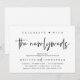 Anuncie e compartilhe seu final feliz com estilo com nosso cartão de convite de celebração de brunch de casamento com tema moderno (Celebre com os recém-casados). É ideal para casais que decidiram celebrar seu melhor dia. Com um design sofisticado e divertido, este convite certamente estabelecerá o tom para um evento inesquecível. O cartão de convite apresenta um design moderno, tema azul-marinho, adicionando um toque de elegância atemporal à sua celebração. Criado por TeeshaDerrick