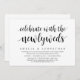 Tema de Roteiro Moderno, cartão de convite de casamento às pressas (Celebre Com os Recém-Casados). É perfeito para o seu jantar de casamento às pressas casual à beira do lago, dança e festa.