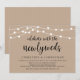 Bela Luzes de Corda de Fazenda Rústica Moderna, fonte Script preta em Fundo Kraft Marrom, Anúncio de Casamento Fuga, cartão de convite (Celebre com os recém-casados). Isso é perfeito para o seu casamento e festa de celebração pós-casamento. Adicione seus detalhes na fonte / letra correspondente.