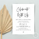 Lindo Moderno Casual Minimalista Preto, fonte Script, Anúncio de Casamento Simples, cartão de convite (Celebre conosco). Isto é perfeito para a recepção do seu casamento e festa de celebração pós-casamento. Adicione seus detalhes na fonte / letra correspondente.