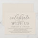 Marque o início do seu para sempre com elegância usando nosso convite de celebração de casamento com tema contemporâneo, "Celebre conosco". Perfeito para casais que desejam estender sua alegre ocasião, este convite exala sofisticação com um toque de jovialidade, preparando o cenário para um evento memorável. Adornado com um tema de design de roteiro moderno atemporal, ele adiciona um toque de charme refinado às suas festividades. Criado por TeeshaDerrick, este convite promete capturar lindamente a sua história de amor.