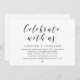 Cartão de convite de casamento íntimo com tema Moderno Preto Script (celebre conosco). É perfeito para a recepção de casamento íntimo / festa de celebração pós-casamento. Adicione seus detalhes em fonte / letra preta correspondente.