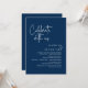 Anuncie e compartilhe seu felizes para sempre com estilo com nosso design de tema azul-marinho moderno (Celebre conosco) cartão de convite de casamento para celebração de fuga. É ideal para casais que decidiram celebrar seu melhor dia. Com seu design sofisticado e divertido, este convite certamente dará o tom para um evento inesquecível. O cartão de convite apresenta um tema de design de roteiro moderno e minimalista, adicionando um toque de elegância atemporal à sua celebração. Criado por TeeshaDerrick