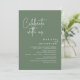 Anuncie e compartilhe seu final feliz com estilo com o nosso design de tema verde-sage rústico moderno (Celebre conosco) cartão de convite de casamento para celebração de fuga. É ideal para casais que decidiram celebrar o seu melhor dia. Com um design sofisticado e divertido, este convite certamente irá definir o tom para um evento inesquecível. O cartão de convite apresenta um tema de design de roteiro moderno e minimalista, adicionando um toque de elegância atemporal à sua celebração. Criado por TeeshaDerrick