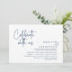 Anuncie e compartilhe seu felizes para sempre com estilo com nosso design de tema azul marinho moderno (Celebre conosco) cartão de convite de casamento elopement. É ideal para casais que decidiram celebrar seu melhor dia. Com seu design sofisticado e divertido, este convite certamente dará o tom para um evento inesquecível. O cartão de convite apresenta um tema de design de roteiro moderno e minimalista, adicionando um toque de elegância atemporal à sua celebração. Criado por TeeshaDerrick