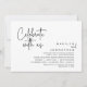Anuncie e compartilhe seu final feliz com estilo com nosso design de tema preto e branco moderno (Celebre conosco) cartão de convite de casamento para celebração de fuga. É ideal para casais que decidiram celebrar seu melhor dia. Com um design sofisticado e divertido, este convite certamente estabelecerá o tom para um evento inesquecível. O cartão de convite apresenta um tema de design de roteiro moderno e minimalista, adicionando um toque de elegância atemporal à sua celebração. Criado por TeeshaDerrick