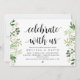 Cartão de convite moderno rústico de verde com eucalipto (com título do cartão: Celebre conosco). É perfeito para a celebração do jantar de ensaio da sua festa de casamento, antes do seu melhor dia. Adicione seus detalhes em fonte / letra preta correspondente.