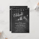 Esta placa de recepção de casamento sofisticada, mas rústica, apresenta uma imagem de fundo do quadro de fixação texturizada, sobreposta com uma imagem que mostra cordas de cordas luminosas brancas piscando. Eu usei uma fonte elegante e giratória para renderizar gráficos retratando as palavras "Celebrar conosco!"; no verso eu coloquei a palavra "amor". Seu próprio texto é facilmente adicionado para personalizar esse modelo tão pouco ou muito quanto você desejar. Use os campos modelo para simplesmente inserir seus detalhes pessoais e clique para personalizar ainda mais se você quiser reposicionar qualquer uma das camadas desbloqueadas. Há uma camada preta esmaecida e opaca acima da camada da lousa; remova-a se você preferencialmente um fundo do quadro-negro mais leve. Por favor, não hesite em contactar-me para receber pedidos especiais ou assistência em matéria de personalização. 73 //