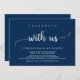 Linda Celebração conosco, Convite, Anúncio de Elopemento de Casamento/Cartão de Convite, em azul marinho de classe russa, simples, design minimalista. Isto é perfeito para a sua recepção de casamento e festa de celebração de posto. Adicione seus detalhes em fontes / letras correspondentes. #TeeshaDerrick