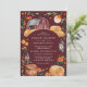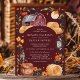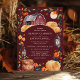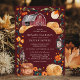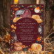 Celebre seu dia especial com este charmoso convite de casamento de outono, apresentando um fundo burgundy profundo com um celeiro vermelho rústico, lanternas brilhantes e flores de outono quentes. Os tons ricos e terrosos e os elementos de design aconchegantes criam uma atmosfera convidativa perfeita para um casamento no campo no outono. Este design captura lindamente a essência de um cenário de fazenda rústica, tornando-o uma escolha ideal para casais que buscam uma celebração única e sazonal.