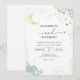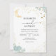 Abrace um céu noturno mágico com este design celestial encantador. Apresentando uma mistura mimológica de elementos estrelados e delicados sotaques florais em blues e dourados suaves, ele estabelece um tom sonhador e romântico. Perfeito para uma comemoração etérea.