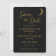 Convite Celestial, Elegante Preto e Dourado Salve a Data